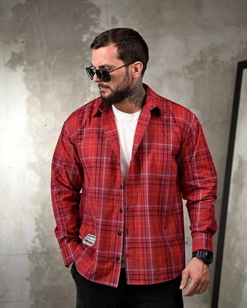 Сорочка оверсайз Doberman червона в клітинку бавовна вільний крій повсякденна XL