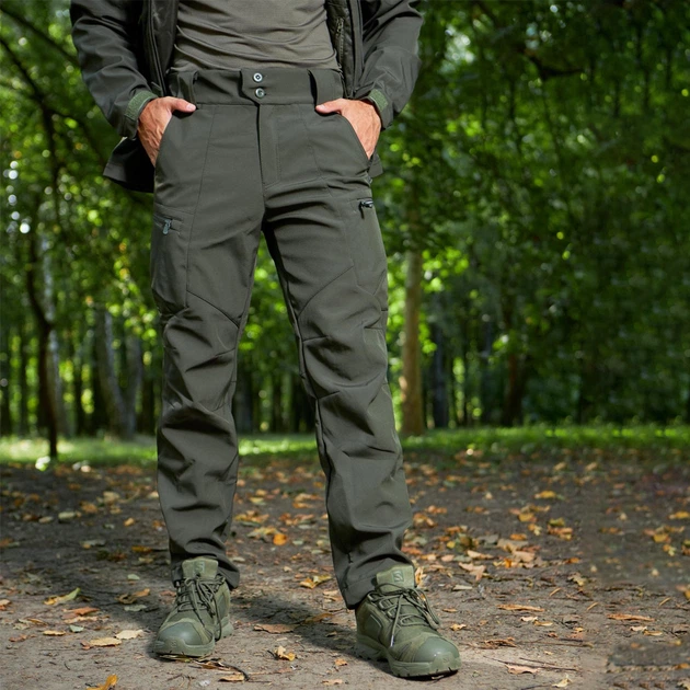 Чоловічі штани на флісі з високою посадкою / Утеплені брюки олива розмір S