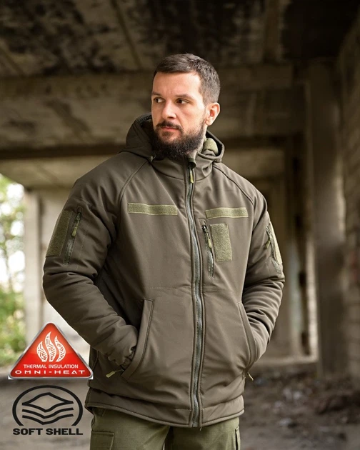 Тактична зимова куртка Restart OmniHeat Олива софтшел водовідштовхувальна утеплена XXL