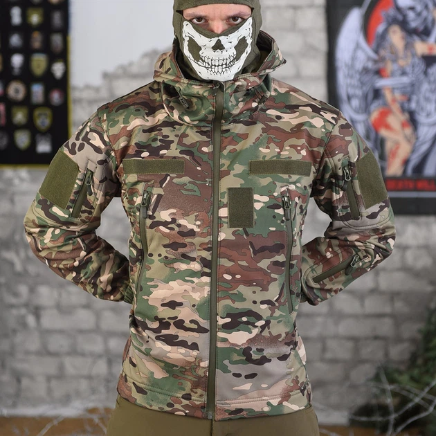 Тактична куртка мультикам софтшелл осінь флісова тепла, Куртка Softshell Multicam Soft shell мультикам XL