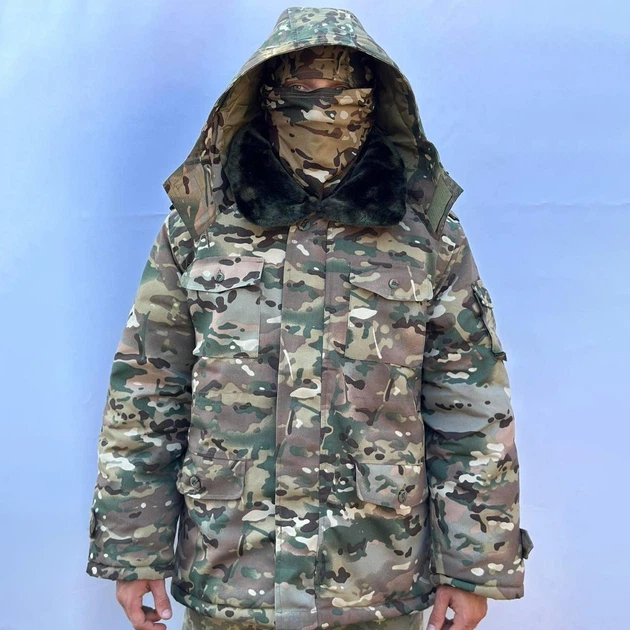 Чоловіча зимова Куртка зі знімною підкладкою та коміром мультикам / Бушлат на синтепоні розмір XL