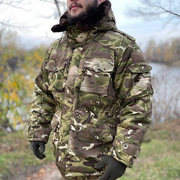 Чоловічий зимовий Бушлат Ripstop з хутряним коміром та капюшоном / Щільна утеплена Куртка мультикам розмір XL