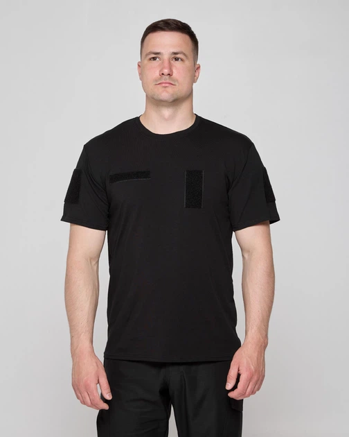 Футболка тактична чоловіча UKM чорна з липучками під шеврони XXL