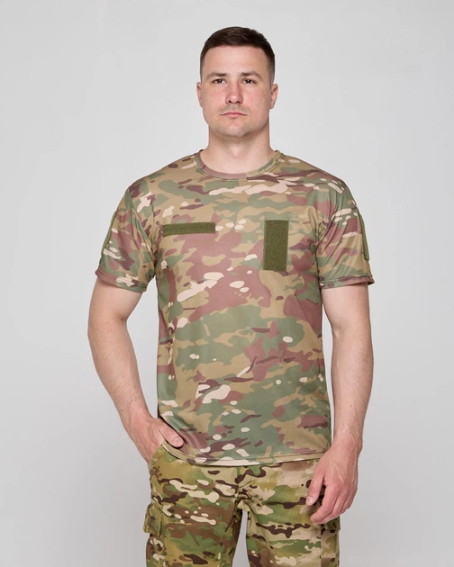 Футболка тактична чоловіча UKM Coolmax потовідвідна мультикам з липучками під шеврони XXL