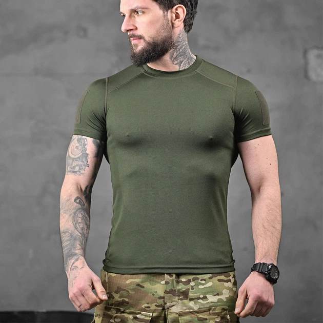 Базова чоловіча потовідвідна Футболка приталеного крою олива розмір XXL