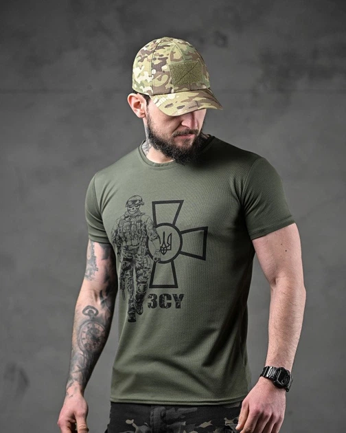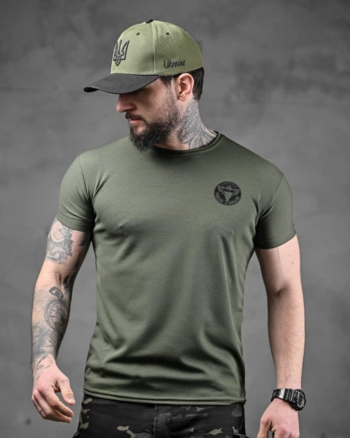 Комплект тактична потовідвідна футболка та кепка Coolmax з шовкографією Olive XL