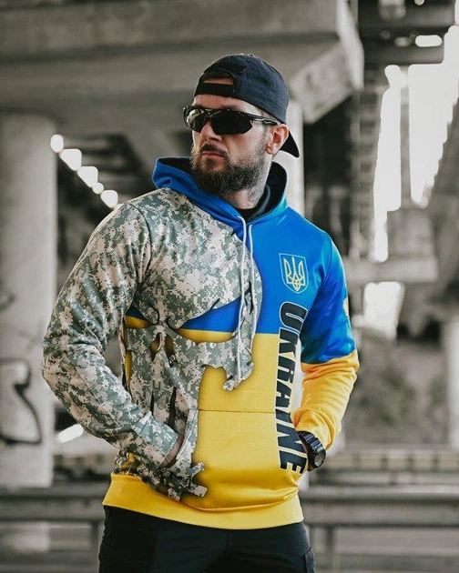 Патріотичне чоловіче худі на флісі Ukraine XL блакитно-жовте (93923)