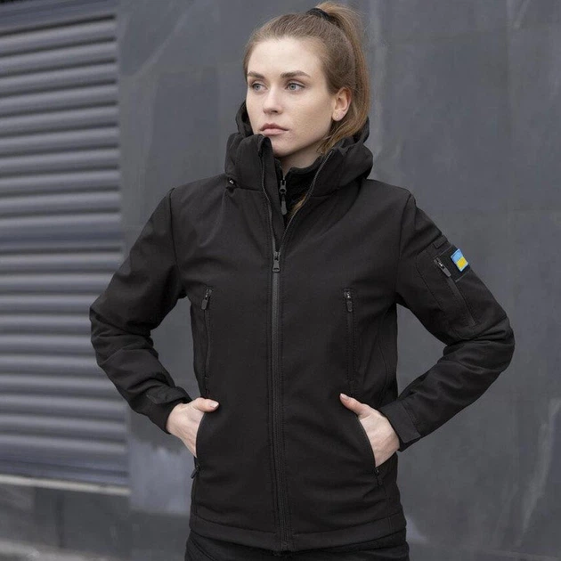 Жіноча Водовідштовхувальна Куртка "Pobedov Motive" Soft Shell + Подарунок шеврон "Прапор України" чорна розмір 3XL