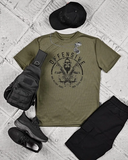Тактична футболка Oblivion Defensive Олива з принтом Coolmax 100 поліестер дихаюча XL