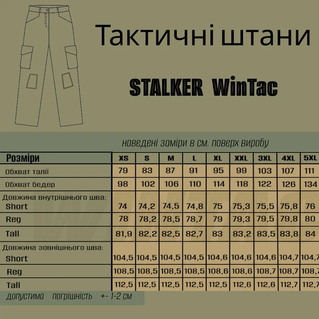 Тактичні штани WinTac Stalker Olive S/Long олива