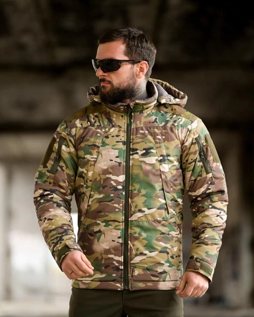 Зимова тактична куртка 762 Мультикам таслан утеплена флісом, вітро- та вологозахист Slimtex S