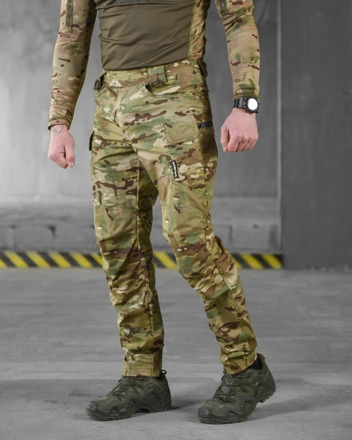 Тактичні чоловічі штани Rip-Stop Multicam - анатомічний крій, утилітарні кишені, манжети на хлястиках, для армії та outdoor