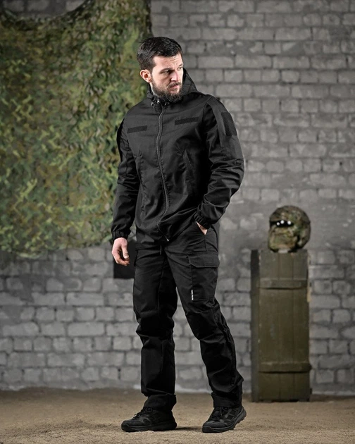 Літній тактичний костюм 762 Black ріпстоп бавовна нейлон з липучками під шеврони манжети на хлястиках S