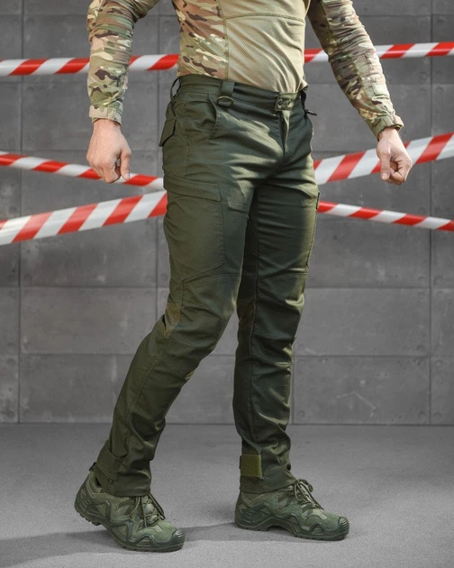 Тактичні штани Tracking Олива ріпстоп бавовна нейлон спандекс різьблений крій манжети на хлястиках L