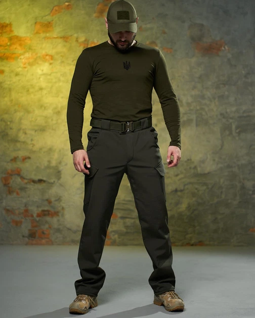 Комплект Intruder Лонгслів Pulse з тризубом + Штани Peak SoftShell олива розмір XL