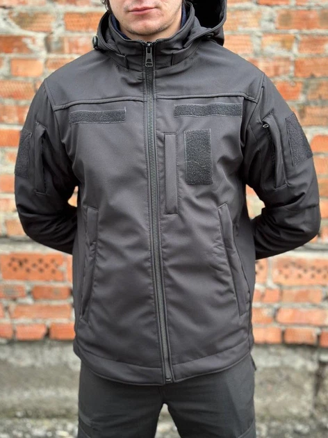 Тактична куртка Softshell з знімним капюшоном чорна демісезон, розмір 58, арт. 0536