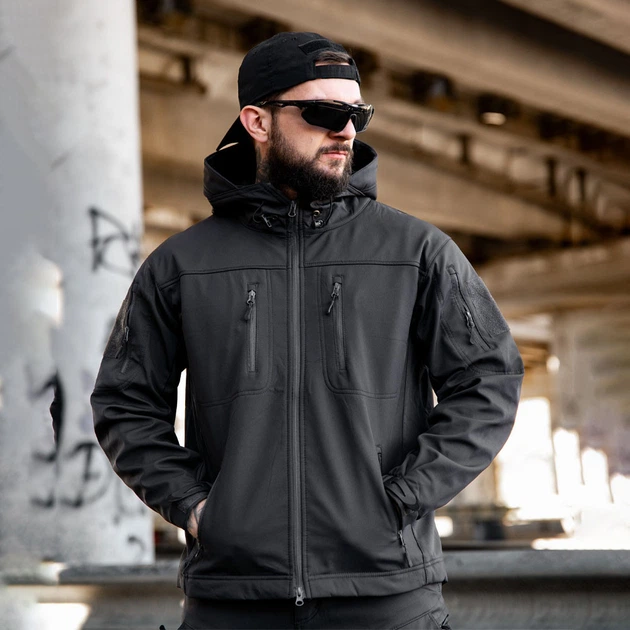 Куртка з капюшоном Maximus Softshell з велкро під шеврони темно-сіра розмір XL