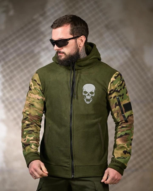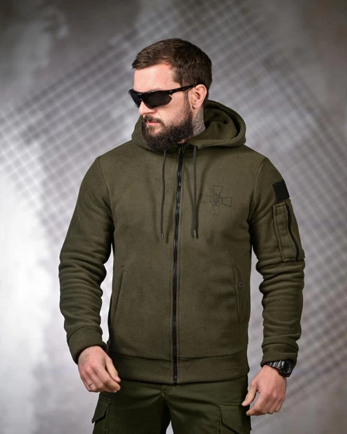 Тактична чоловіча флісова кофта Polar Fleece оливкова з капюшоном та вологозахищеними блискавками XL
