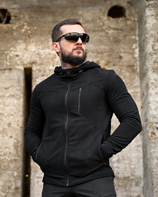 Тактична чоловіча флісова кофта Honeycomb Black військова фліска з трикотажу з утяжками XL