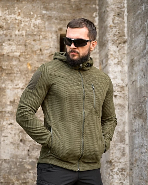Тактична флісова кофта Honeycomb Олива військова чоловіча фліска з утяжками на поясі XL