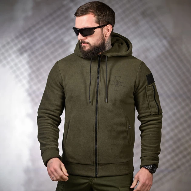 Флісова Кофта з капюшоном та принтом ЗСУ XL олива