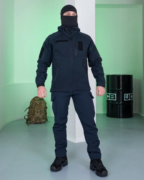 Форма Softshell на флісі Куртка з липучками під шеврони + Штани темно-синя розмір L