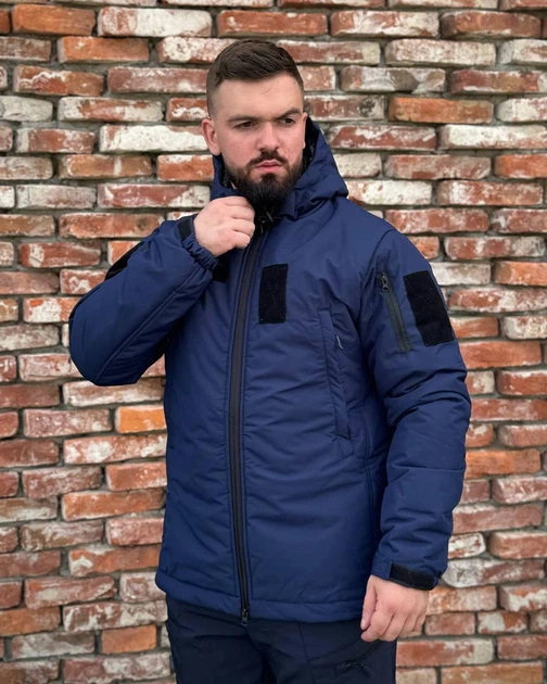 Утеплена Куртка Military R+ ДСНС з липучками під шеврони темно-синя розмір XL