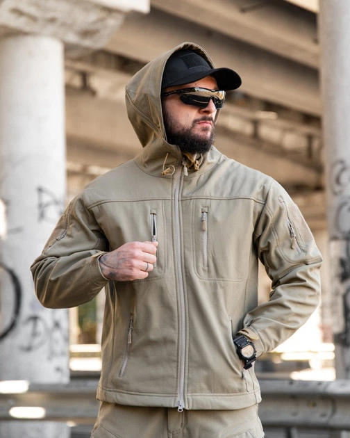 Міська тактична куртка Maximus софтшелл Койот вітро- та вологозахисна з липучками для шевронів XL