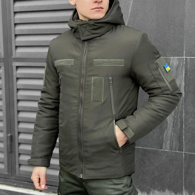 Зимова чоловіча Куртка Pobedov “Motive” до -20°C з шевроном Прапор України хакі розмір XL