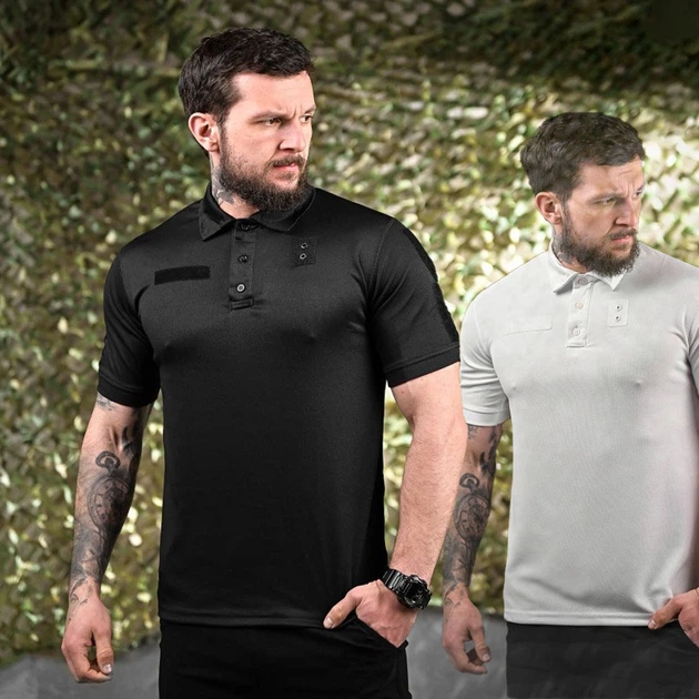 Комплект Поло з липучками під шеврони чорне + біле розмір XL