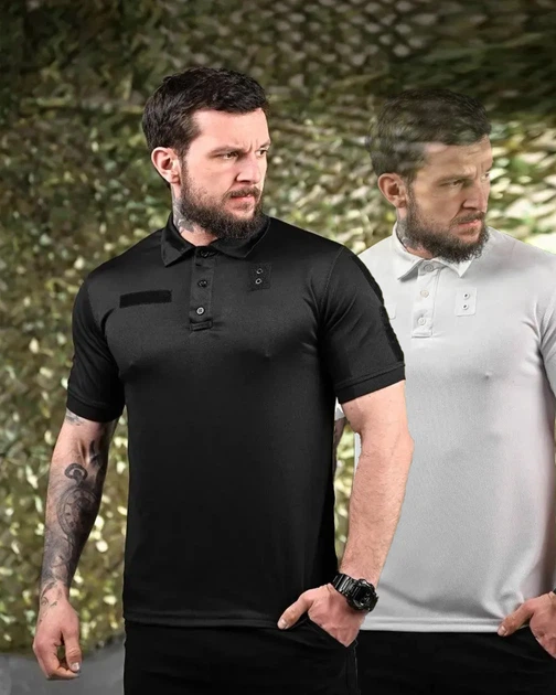Футболка Поло 2в1 з липучками під шеврони чорна та біла розмір XL