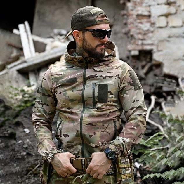 Чоловіча Куртка SoftShell з капюшоном та липучками під шеврони піксель розмір XL