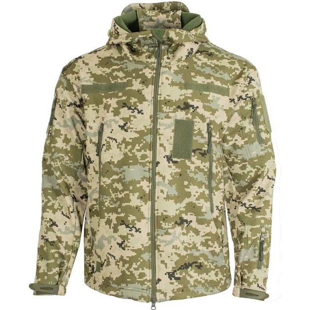 Чоловіча Куртка SoftShell з капюшоном та липучками під шеврони піксель розмір 5XL