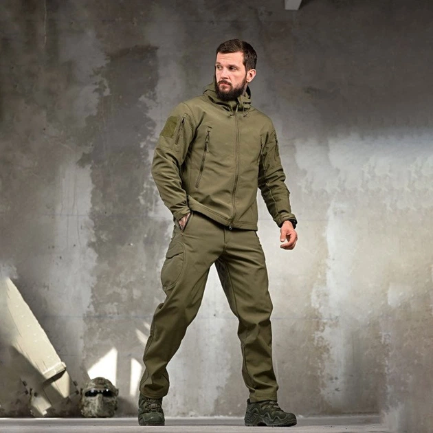 Чоловіча Форма Softshell на флісі Куртка з капюшоном + Штани олива розмір 2XL