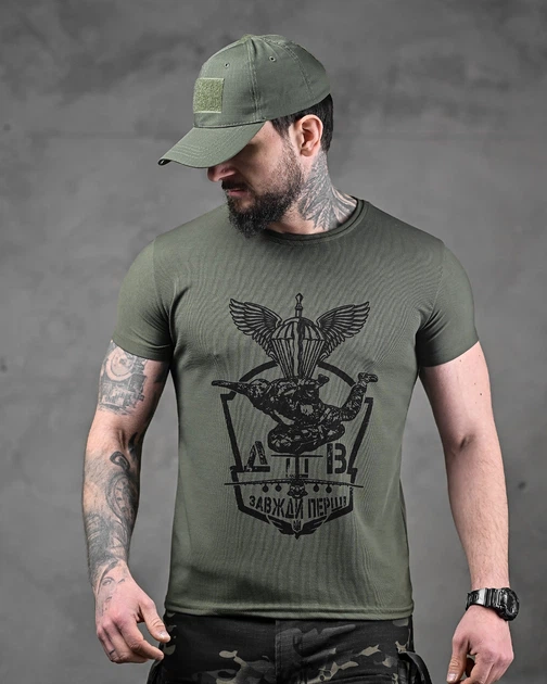Футболка Coolmax з принтом ДШВ Завжди Перші олива розмір 2XL