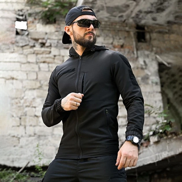 Тактична флісова кофта з липучками для шевронів Black XL