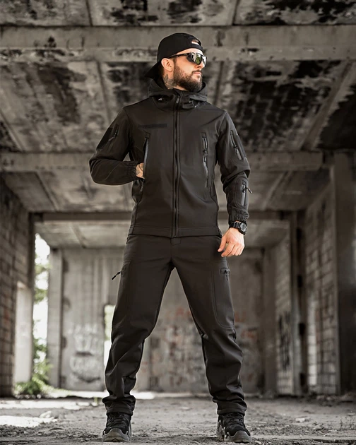 Чоловіча Форма Revival SoftShell Куртка з капюшоном + Штани чорна розмір S