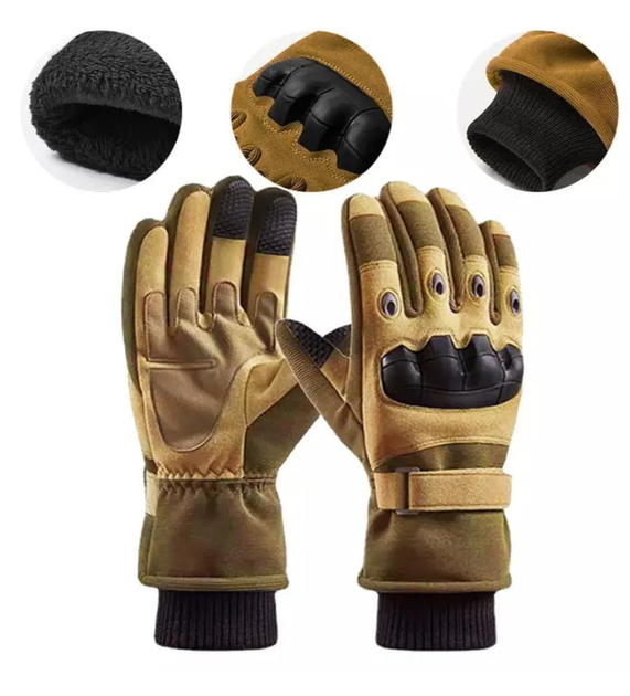 Тактичні зимові повнопалі рукавички з хутром койот XL