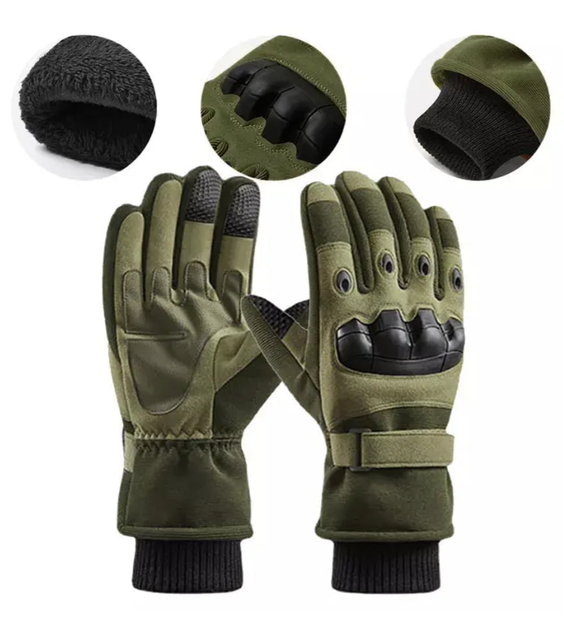 Тактичні зимові повнопалі рукавички з хутром олива XL