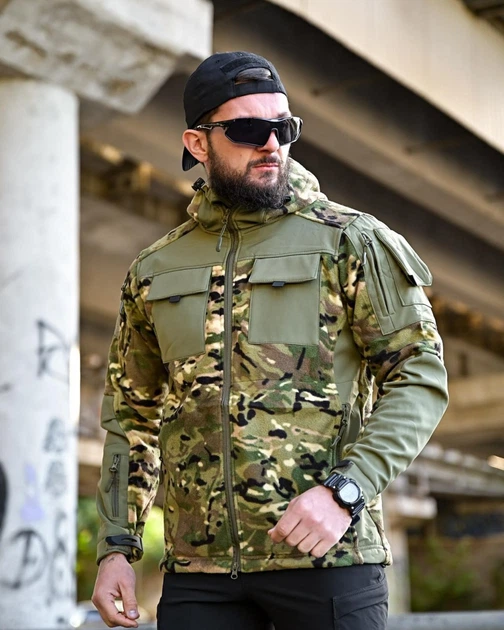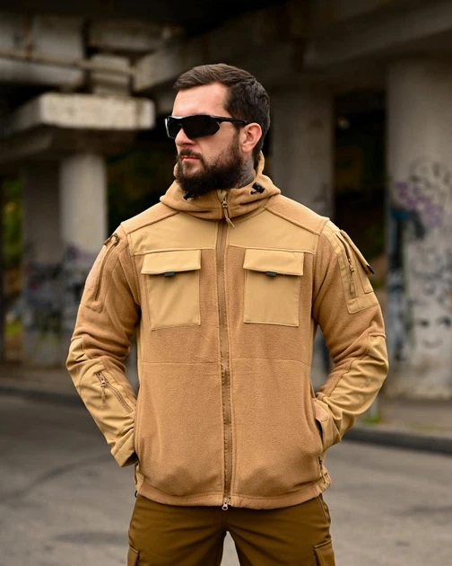Тактична флісова кофта Comandos Combo Койот, чоловіча військова фліска з софтшелл вставками XL
