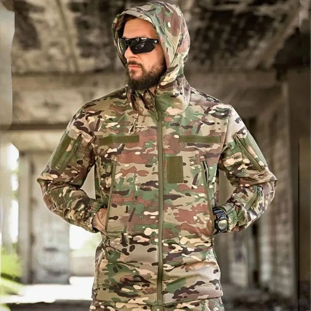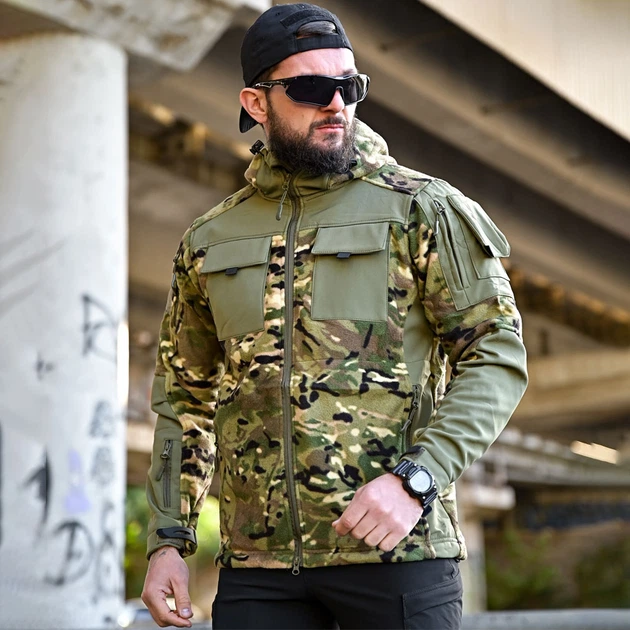 Куртка флісова із вставками Софтшел та капюшоном XL мультикам