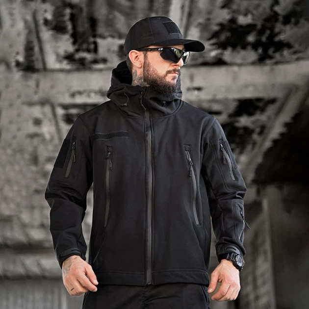 Демісезонна Куртка KMS Police з капюшоном Softshell на флісі чорна розмір XL