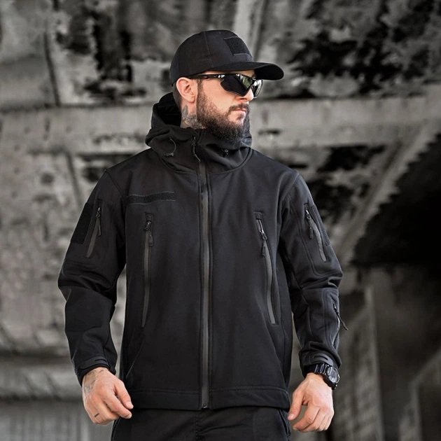 Куртка SoftShell Поліція з липучками для шевронів XL чорна