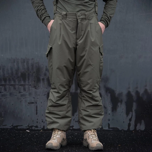 Чоловічі Штани з підтяжками та утеплювачем Thermoloft олива розмір M