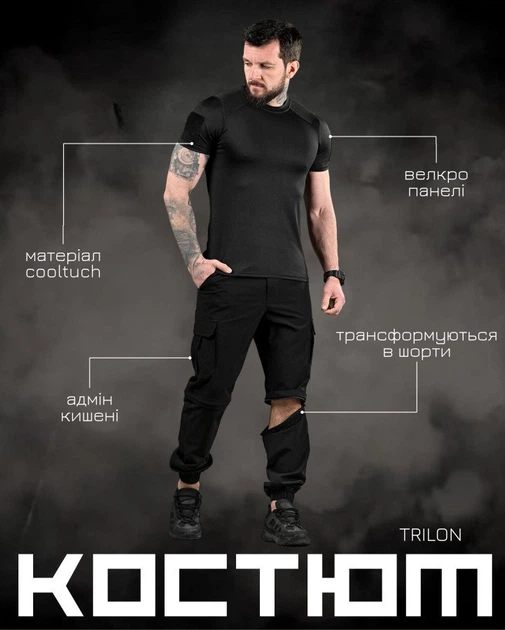 Тактичний літній костюм-трансформер 2 в 1 штани шорти,еластична тканина Black XXL