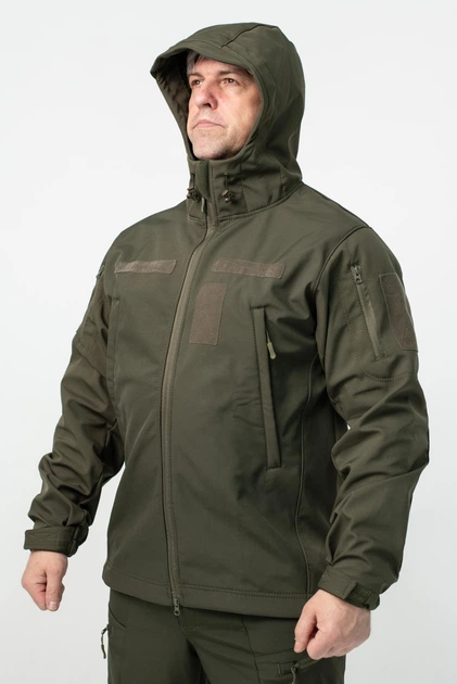 Тактична чоловіча куртка Soft shell на блискавці з капюшоном водонепроникна 4XL олива 00089