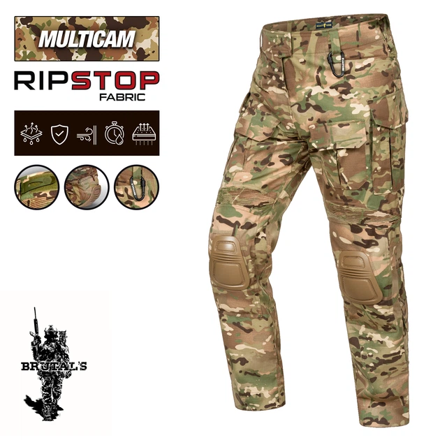 Brutals тактичні штани з плісованими вставками, бойові брюки ЗСУ мультикам з наколінниками, р.XL