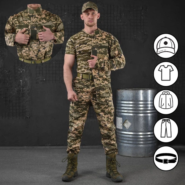 Чоловічий Костюм 5в1 Кітель + Футболка + Штани + Кепка + Пояс / Польова Форма піксель розмір 2XL