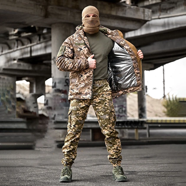 Зимова форма KMS Gamma Gen 2 Softshell з утеплювачем Slimtex куртка + штани піксель розмір L