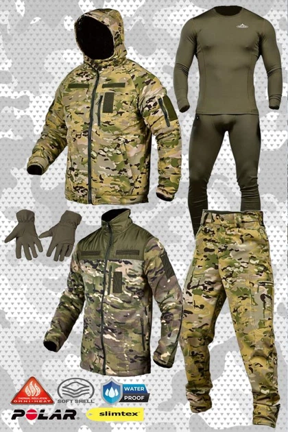 Зимовий тактичний костюм Neptun 5в1 Мультикам куртка штани флісова кофта термо рукавички M